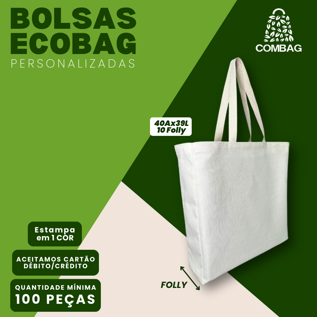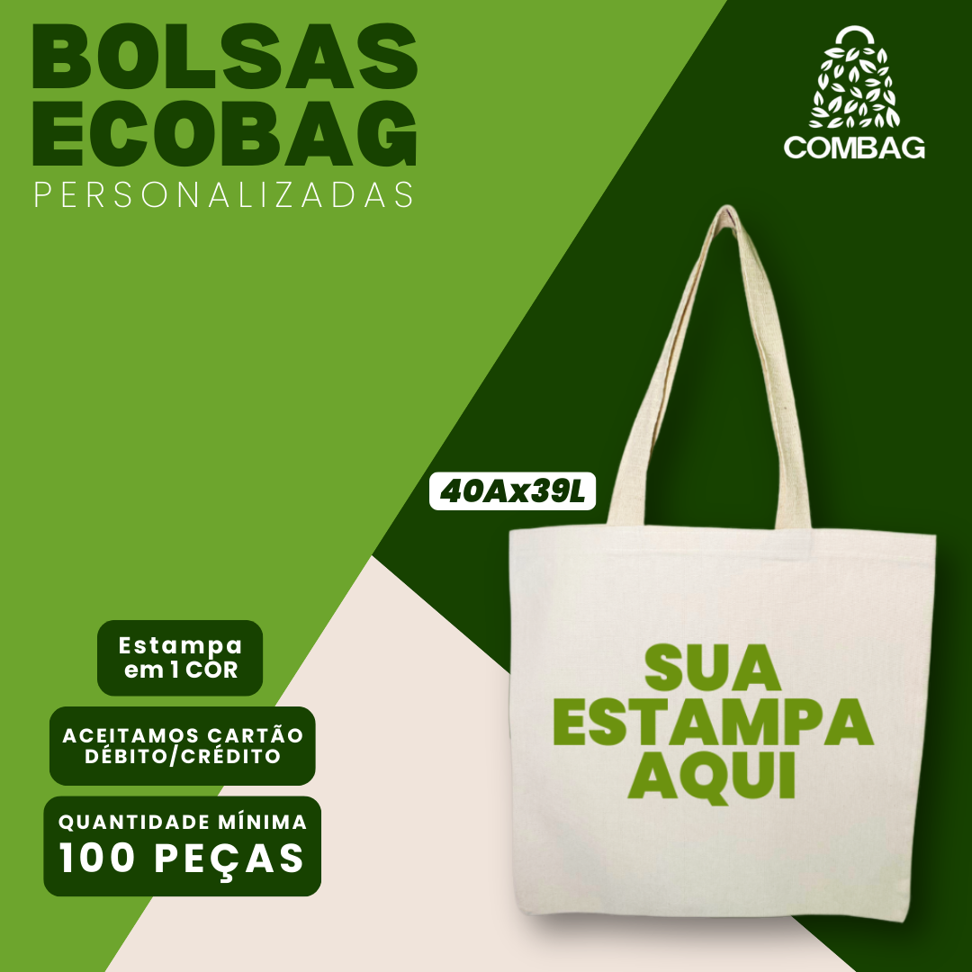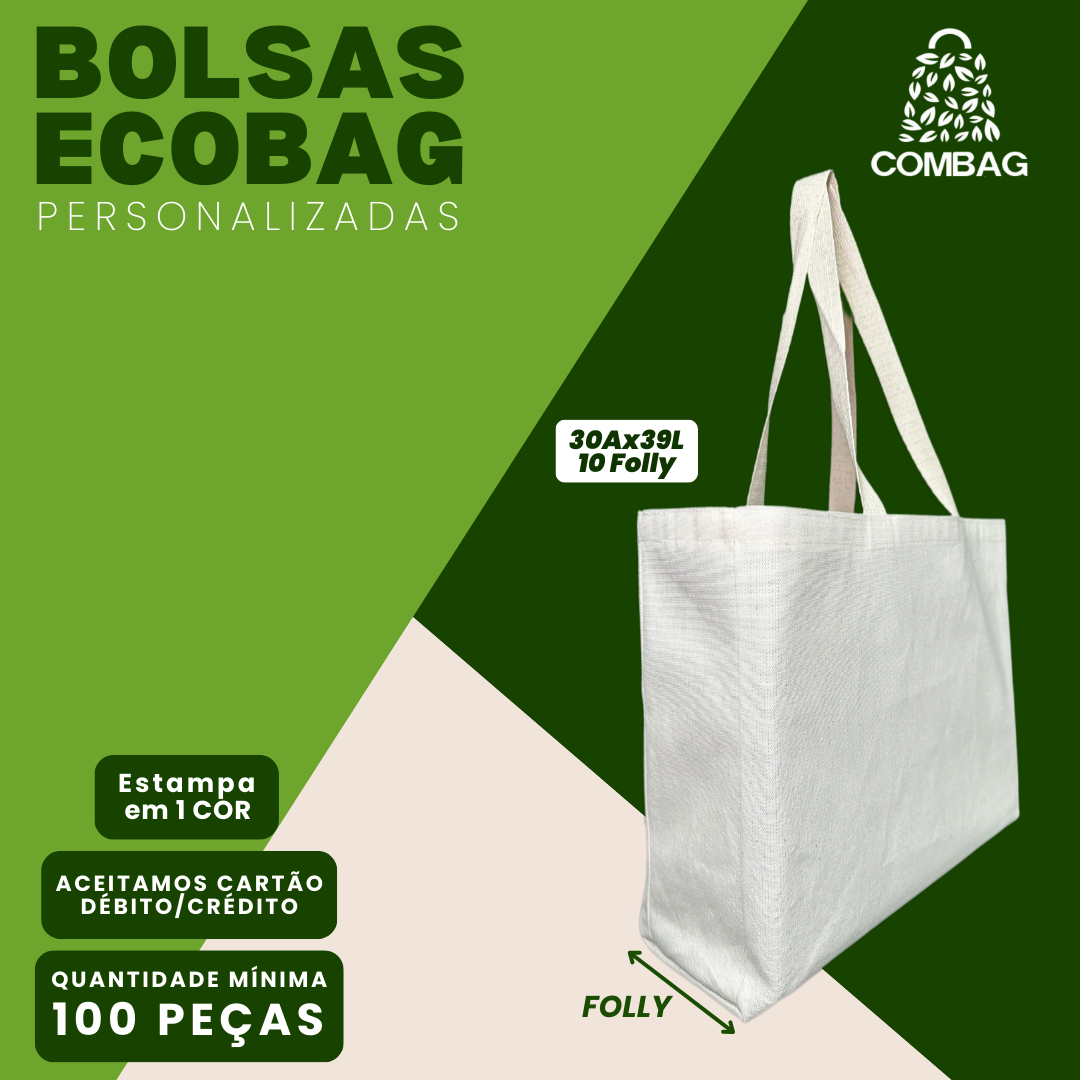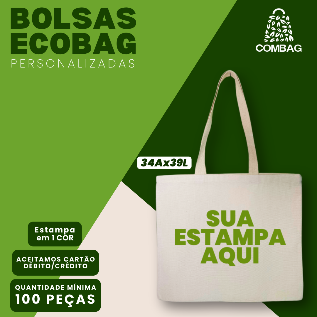Tecido: 100% Algodão CruGramatura: Nova Gramatura, mais tecnologia.Alças: Trançadas com 65cm de comprimento(padrão) 100% em algodão cru, altamente resistenteEntrega: Frete em até 48H para RJ e SP (capital)Brasileiro: Produto fabricado no Brasil